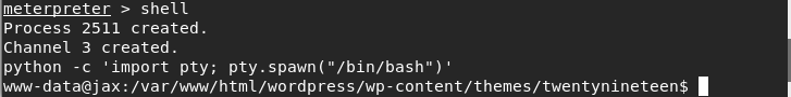 拿到shell第1件事就是獲取一個標準shell,可通過以下命令獲取python-c import pty; pty.spawn("/bin/bash")