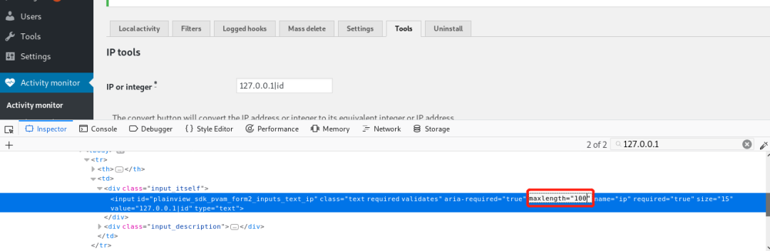 確實可以存在命令執(zhí)行,但該輸入框存在長度限制,這里使用瀏覽器修改前端參數繞過