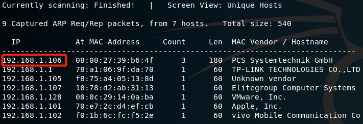 主機探測:netdiscover-i eth0 -r 192.168.1.0/24