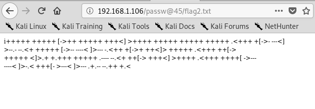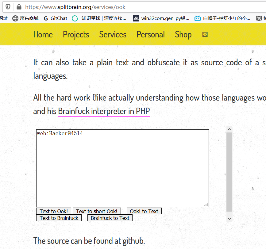 于是在網上找了brainfuck在線解碼網站,得到一對用戶名密碼