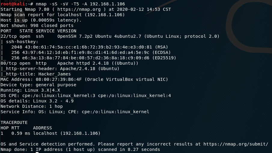 端口探測及服務識別:nmap-sS -sV -T5 -A 192.168.1.106